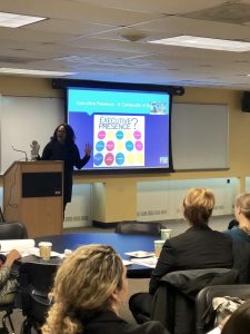 Barksdale shared a few tangible resources, including an online quiz, “Test Your Executive Presence”, and also encouraged attendees to lead with their values, and discover their own answers to the following three questions: